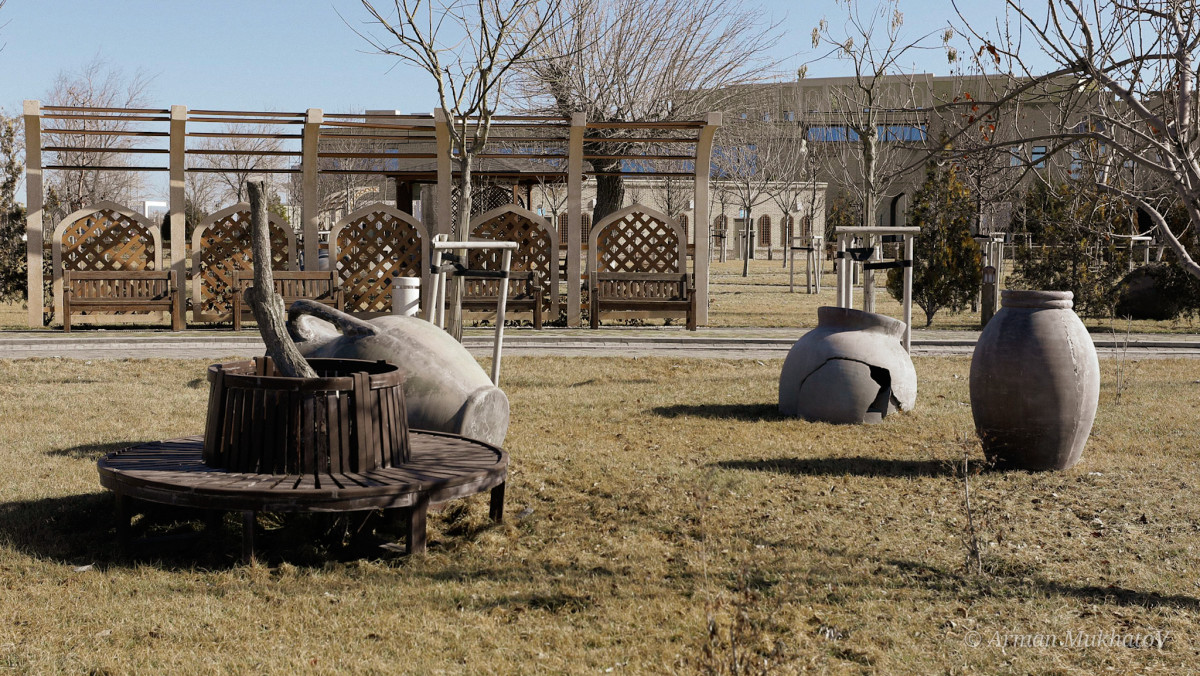 Неподалеку от мавзолея Ходжа Ахмет Яссауи инициаторы некогда грандиозного проекта решили развернуть настоящий этноаул. Пару лет назад на этот национально-культурный комплекс также выделили миллионы бюджетных средств, однако посетители так и не увидели заявленных масштабов, не смогли проникнуться духом кочевников, походить по восточному базару, попить кумыса в юртах. Нет здесь и так называемой улицы ремесленников. От ремесла, в том числе гончарного, остались только битые горшки.