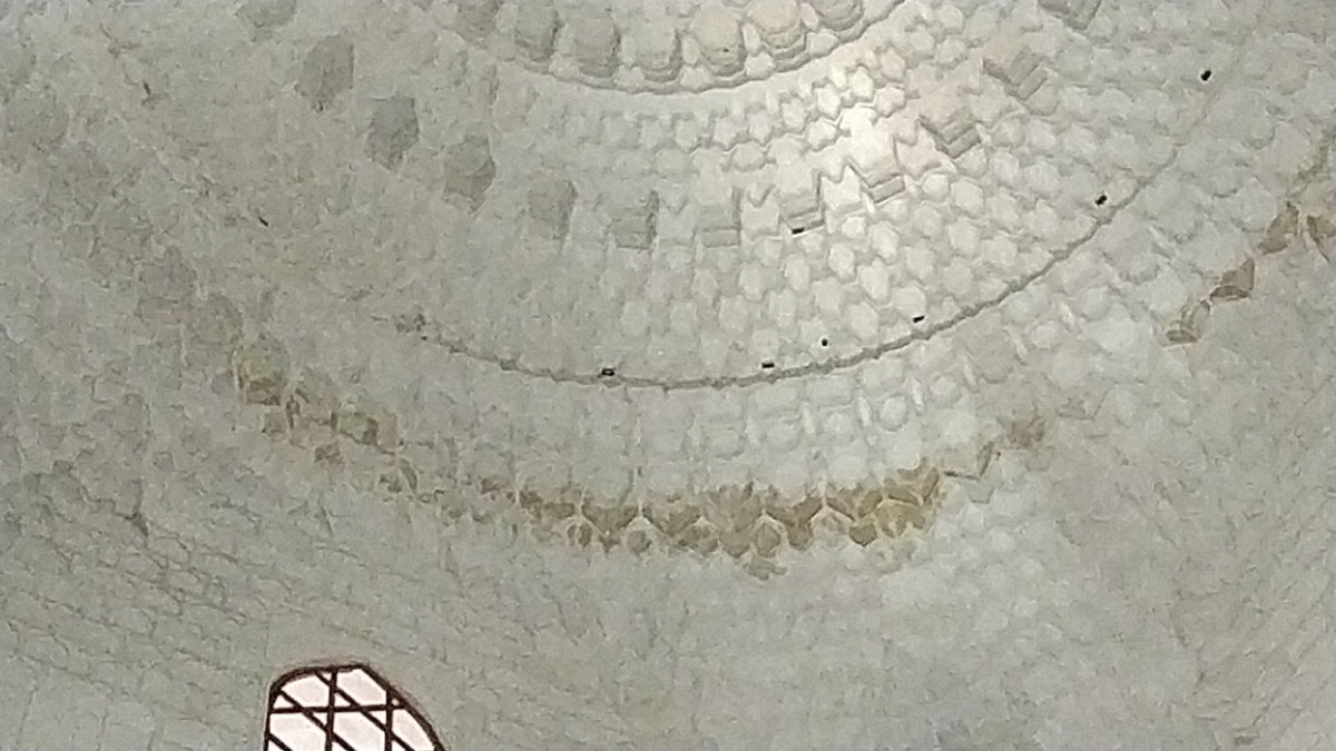 "В советское время из-за нарушения температурно-влажностного режима произошло образование конденсатов внутри сооружения. Влажность проникла в сталактиты и произошло разрушение верхнего ряда сталактитового декора купола казандыка. Хорошо что тогда не было туристов. Сейчас также возникла угроза обвала сталактитов большого купола и поэтому помещение закрыто для посетителей. Я посмотрел и те помещения, которые сейчас открыты для туристов. Это в первую очередь помещения мечети, где также имеется этот редкий, уникальный сталактитовый декор купола. Увы, в мечети также происходят негативные изменения: идет отслоение побелки на стенах, наблюдается выпадение штукатурки, разрушаются отдельные детали ганчевого декора перекрытия. То есть и здесь влага проникает в перекрытия мечети. В данной мечети располагается уникальный для Центральной Азии мозаичный михраб. Здесь уже тоже виден процесс проникновения влаги, а с ней и соли в детали мозаики. Соль разрушает глазурованное покрытие. Видно, что в михрабе уже уничтожен ряд деталей", - печально подмечает историк.