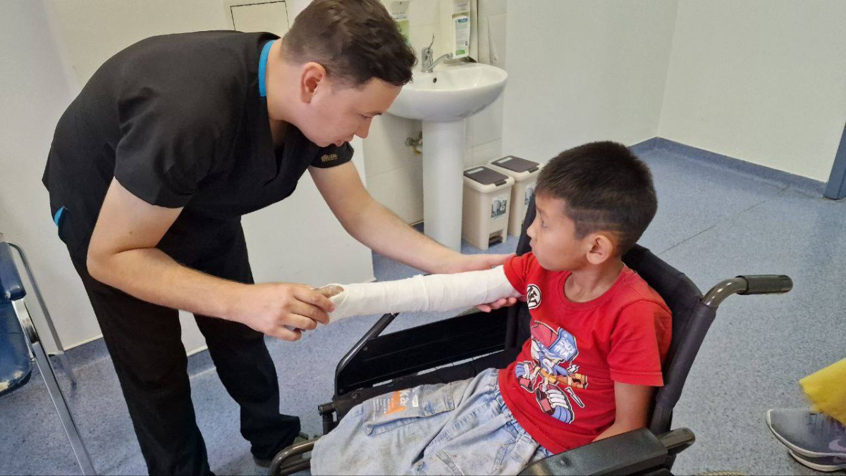 Восьмилетний Бауржан качался во дворе на качелях-балансире. Неудачное падение – закрытый перелом запястья со смещением. Травматолог Олжас Жунусов изучает рентгеновские снимки. Если кость при вправлении встанет на место, мальчику придётся месяц ходить в гипсе. Если нет, его ждёт операция, где кость придётся фиксировать металлическими штифтами. Пациент мужественно перенёс боль, руку фиксируют гипсом. Повторный снимок, и врач объясняет маме: как только спадёт отёк, нужен ещё один снимок, а ребёнку придётся походить несколько недель в гипсе.