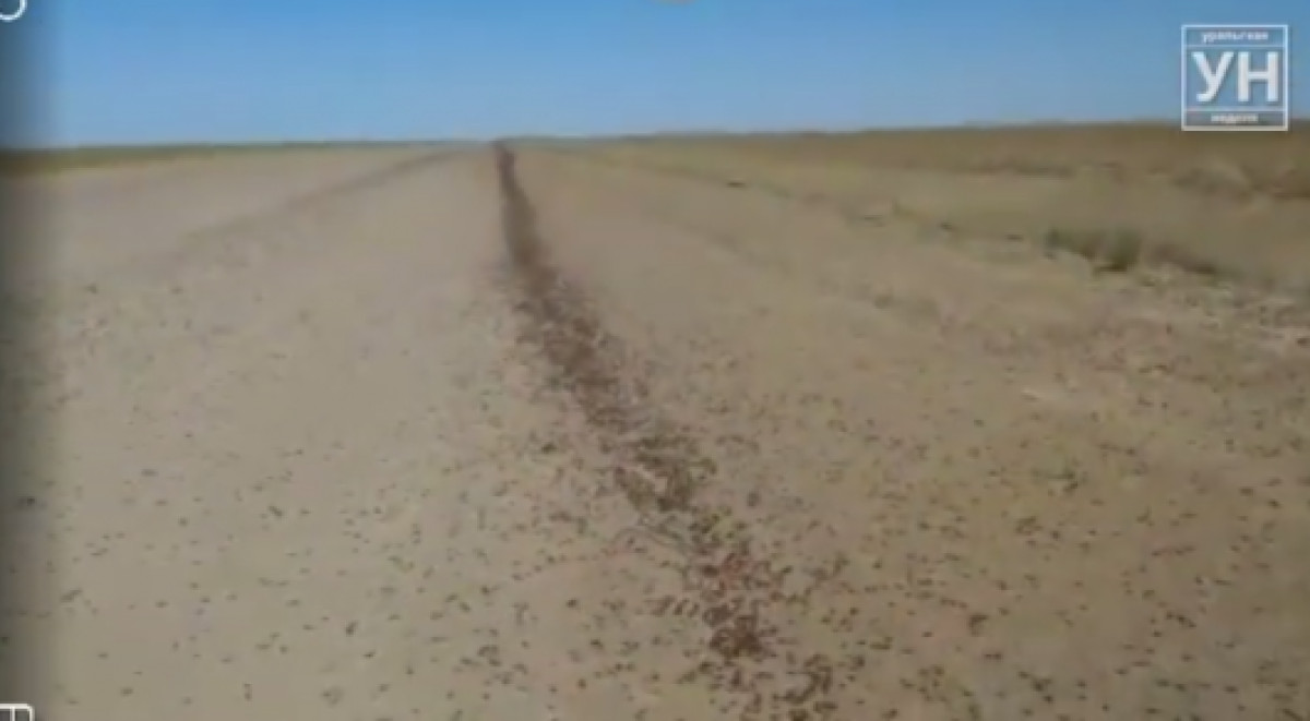 Мигрирующие насекомые удивили водителя-дальнобойщика, который ехал по трассе Чапаево-Казталовка в Западно-Казахстанской области. Мужчина заснял на видео странное передвижение насекомых. Как пишет издание "Уральская неделя", видео было снято 25 сентября на трассе Чапаево-Казталовка, в районе поселка Акпатер.