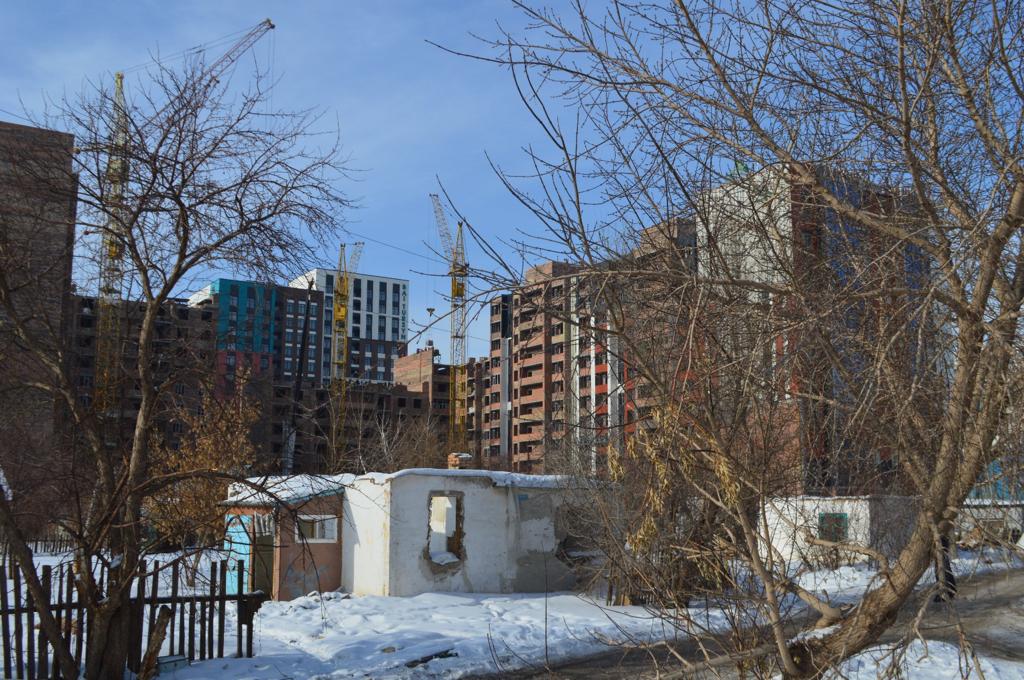 К примеру, в районе железнодорожного вокзала "Нурлы жол" несколько лет назад можно было встретить частный сектор и множество дач. Но в связи с расширением города и развитием инфраструктуры сейчас здесь возвышаются новостройки, а среди них дома и деревья, готовящиеся к сносу. Многие здания уже разрушены, а деревья поломаны.