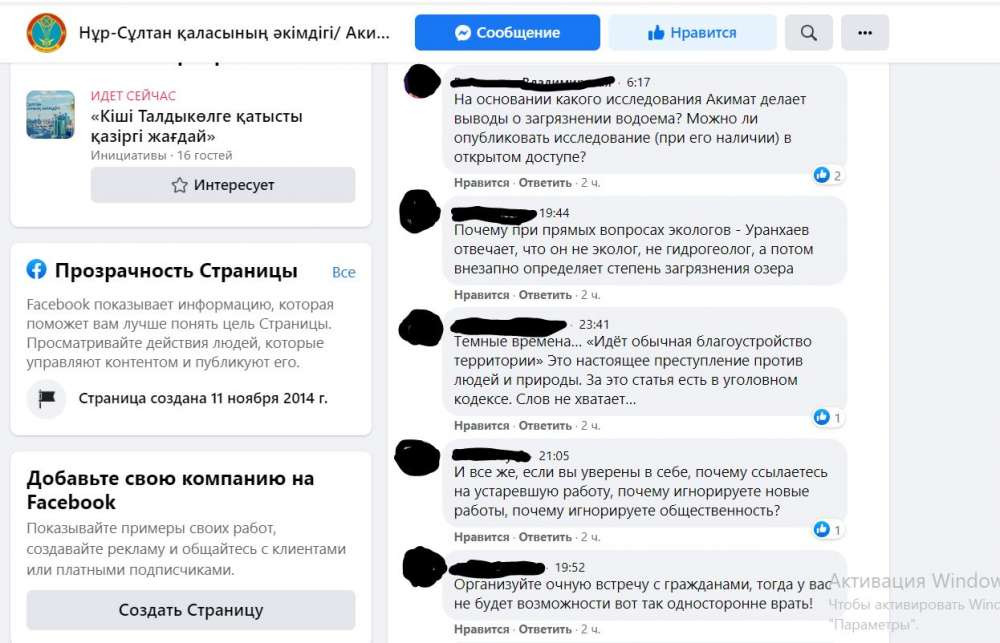Вопрос: "Почему не проводились со стороны столичного акимата общественные слушания, с участием жителей прилегающих ЖК. Почему эти работы проводятся без учета мнений экоактивистов, граждан и жителей прилегающих районов?"