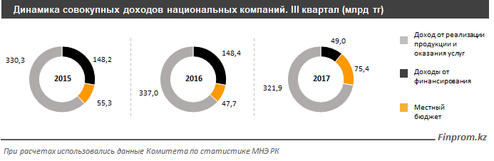 Причина фиксации убытков - нацкомпании не зарабатывают в достаточной мере, чтобы финансировать резко возросшие расходы. За III квартал текущего года совокупный объем полученных доходов нацкомпаний составил 446,3 млрд тенге, или на 16,3% меньше, чем было заработано за аналогичный период прошлого года.