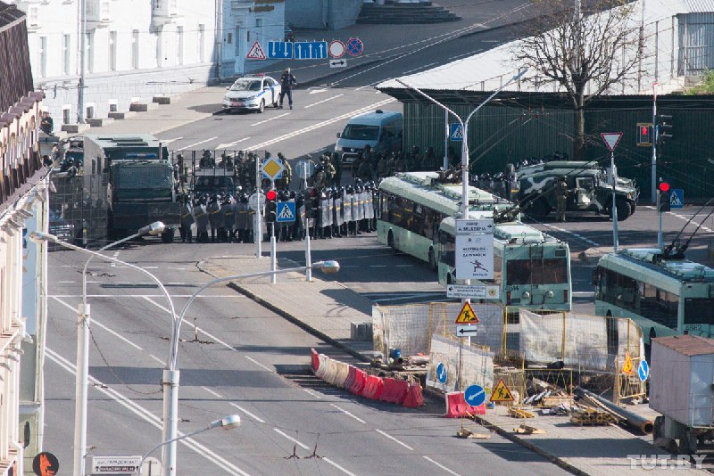 Перед началом мероприятия в Минске закрыли несколько станций метро. В центр города стянули грузовики для перевозки военнослужащих. Дворец республики оцепили, там стоят автомобили с рулонами колючей проволоки.