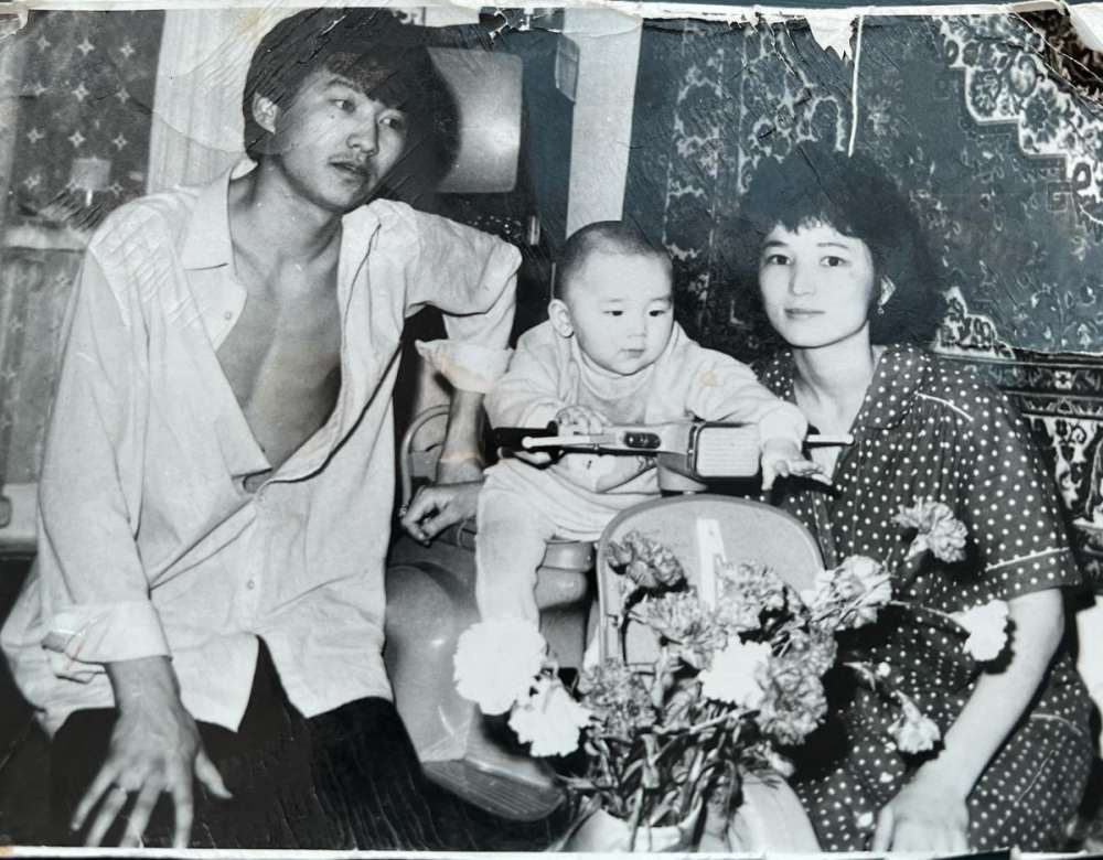 Возможно, вы и не догадываетесь, кто этот брутальный карапуз на детском мотоцикле, но поклонники Кайрата Нуртаса узнают своего кумира из тысячи малышей. В принципе, цветы на первом плане должны были подсказать вам, кто это. Самый известный казахский певец, любимец публики и просто Кайрош.