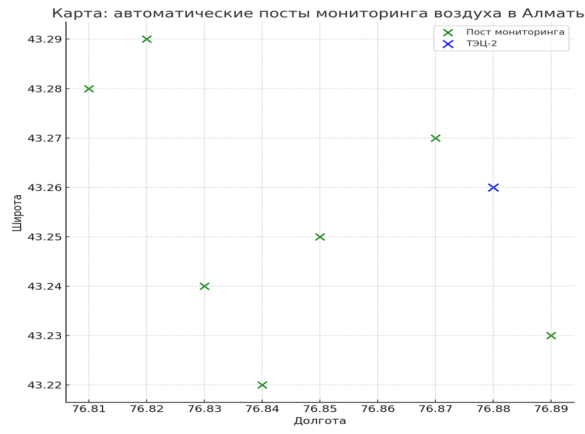 Посты мониторинга воздуха в Алматы: