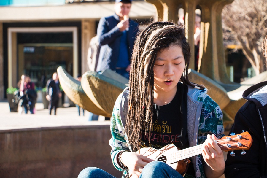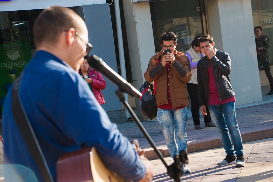 «Мне с самого детства нравились уличные музыканты и мне очень хотелось также играть для людей, но у меня не хватало смелости и были проблемы с вокалом. Сейчас я стараюсь выходить на улицу в свободное от учебы время и порой по привычке заворачиваю на новую площадь. Обычно я хожу с кем-нибудь, не выступаю в одиночестве», - поделилась собеседница.