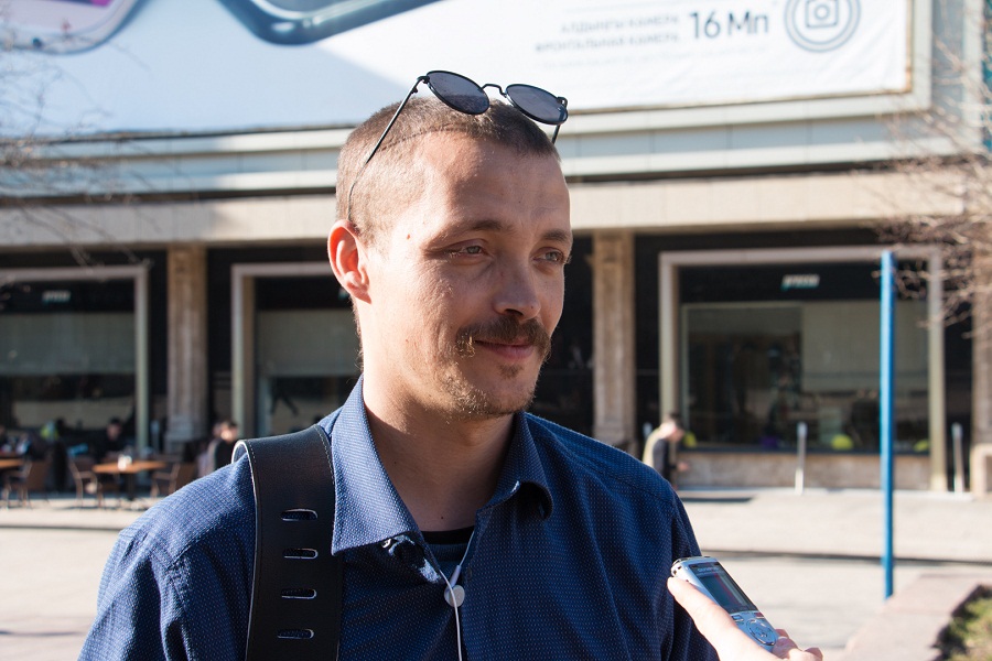 «Я выхожу петь, когда есть свободное от работы время, стою и зимой, и летом где-то по 3 часа. Выходить на улицу меня заставляют далеко не деньги, а просто порыв души. Я никогда не занимался в музыкальной школе. Игре на гитаре научился после армии. В основном исполняю русский рок, шансон, но более адекватный, скажем так», - рассказывает Юрий.