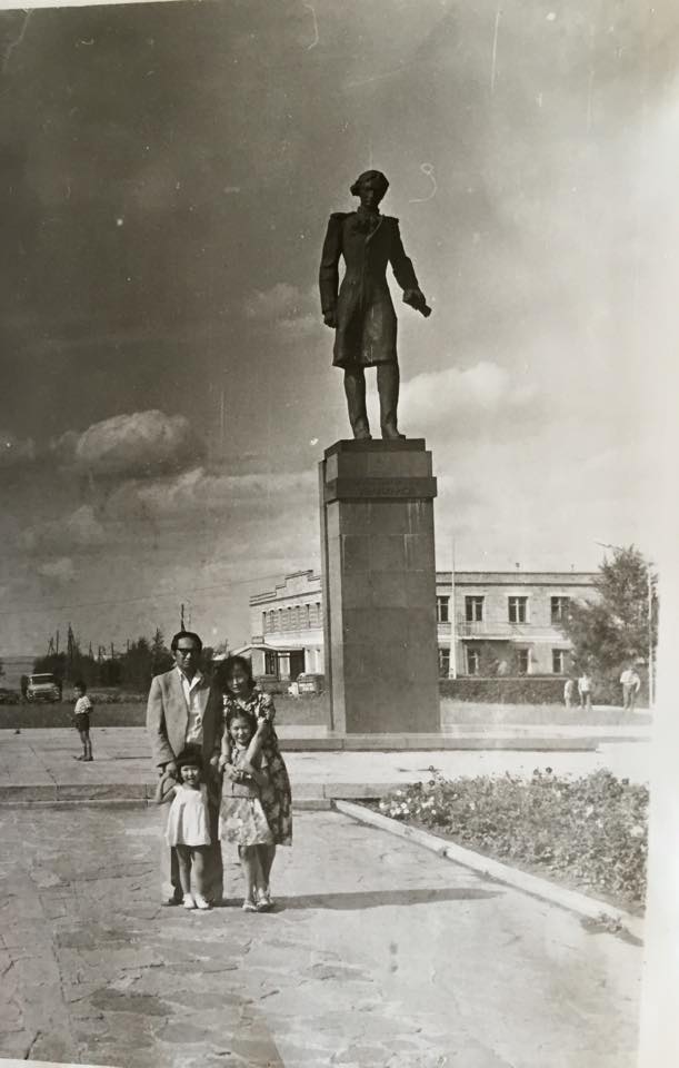 Возле памятника Чокану Валиханову в Кокчетаве (ныне Кокшетау) перед поездкой на семейный отдых в село Зеренда