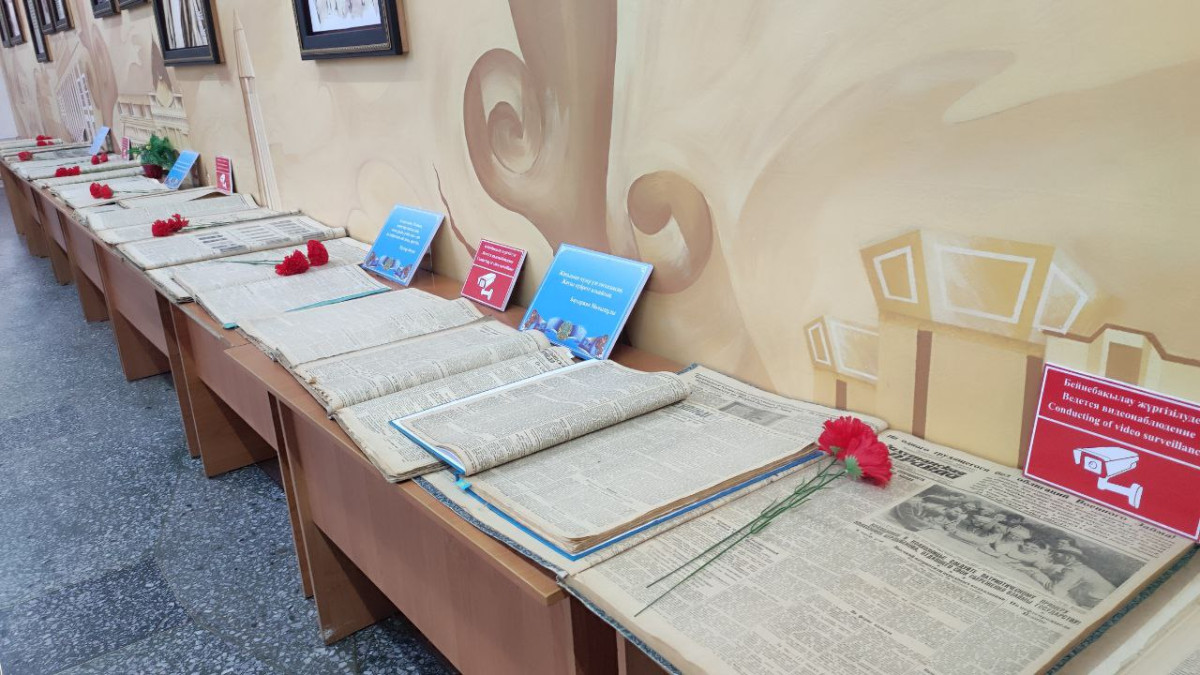 "На нашей выставке представлено 14 подшивок и больше 10 книг, которые изданы именно в годы войны. Хоть и было сложное время, но типографии работали, издательская деятельность не стояла на месте. Книги поднимали дух народа. Например, в те годы выпустили карманный вариант произведения "Енлик-Кебек", - рассказывает руководитель отдела редких книг библиотеки имени Абая Жанылгуль Адильбеккызы. - Ход военных событий освещался во всех местных и республиканских газетах. Народ был заинтересован, с нетерпением ждал новостей. Ведь почти у каждой семьи воевали их близкие. Им было важно знать, что происходит на линии фронта".