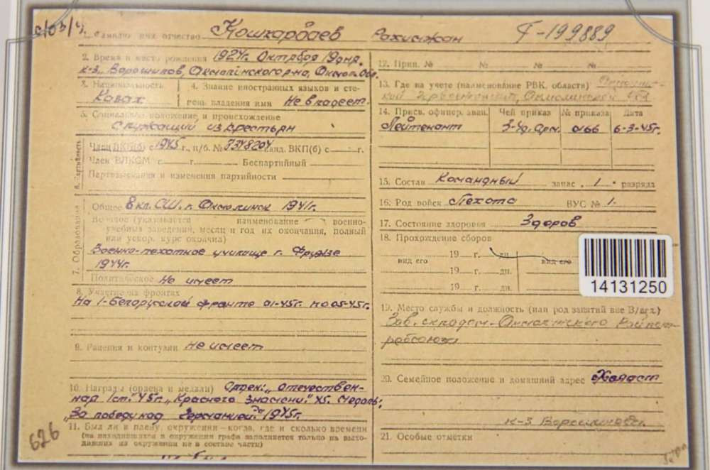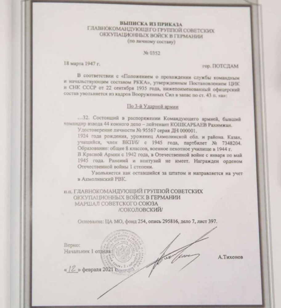 Документалист, эксперт Акмарал Баталова получила эти документы в Центральном архиве министерства обороны Российской Федерации.