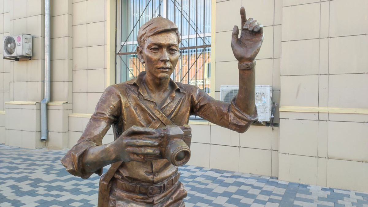 В городе уже формируется легенда, согласно которой прототипом фотографа стал военный писатель, Герой Советского союза Бауыржан Момышулы, в честь которого названа одна из улиц. Именно его лицо пытаются разглядеть в образе фотографа. Мы выяснили, что это не так. Скульптору позировал семейский парень, студент академии имени Жургенева.