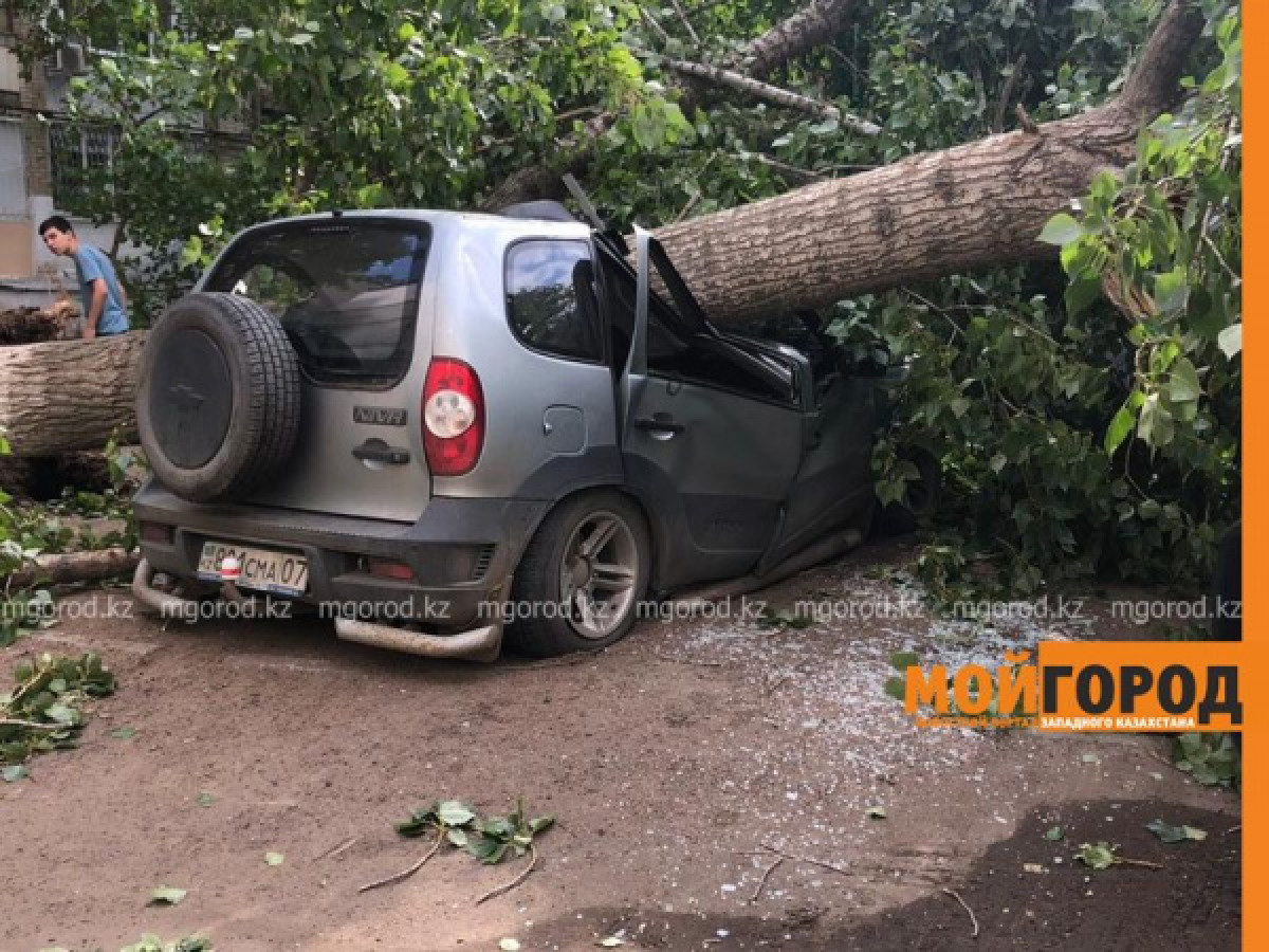 В Уральске из-за шквального ветра повалило деревья, рекламные щиты и конструкции, сообщает корреспондент портала