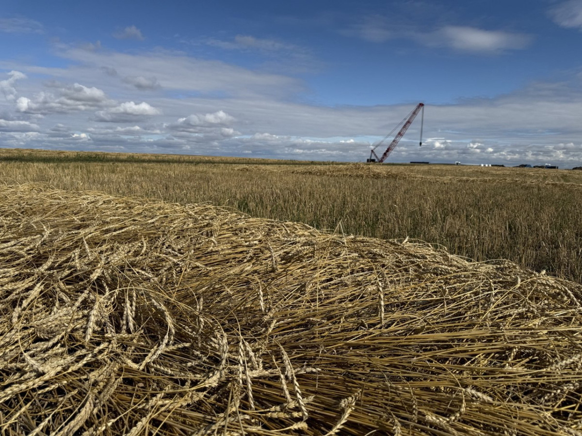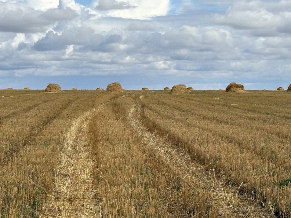 Недавно мы побывали на полях Костанайского района. Большая часть на посевных площадях, расположенных в нескольких десятках километров, уже убрана. Часть пшеницы собрана в снопы, которые еще предстоит подобрать. На полях работают комбайны, тракторы и другая техника.