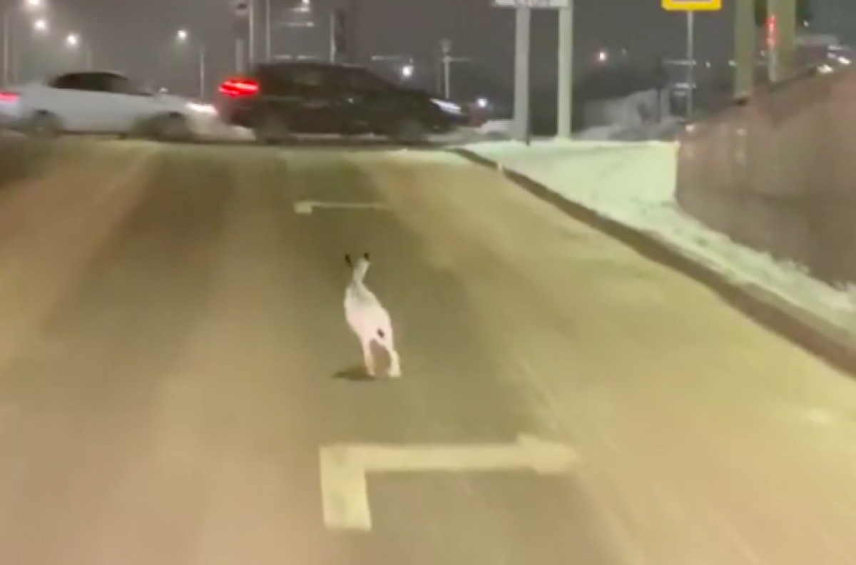 В сети появилось видео зайца, бегущего по проезжей части одной из улиц Нур-Султана, передает BaigeNews.kz.