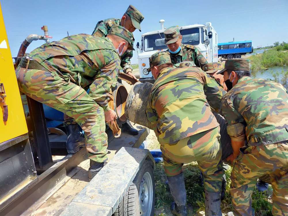 Сегодня узбекские спасатели принимают участие в откачке воды в районе между поселками Нурлыжол и Оргебас.