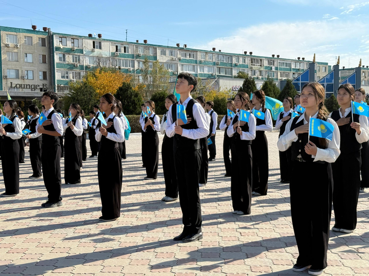 Мероприятие прошло с участием учащихся 9–11 классов школы №12. Его целью стало воспитание у молодежи чувства гордости и уважения к государственным символам Казахстана.