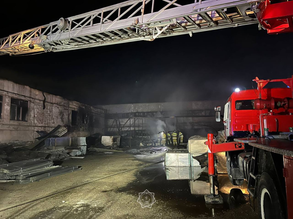 В Актобе горит склад со стройматериалами
