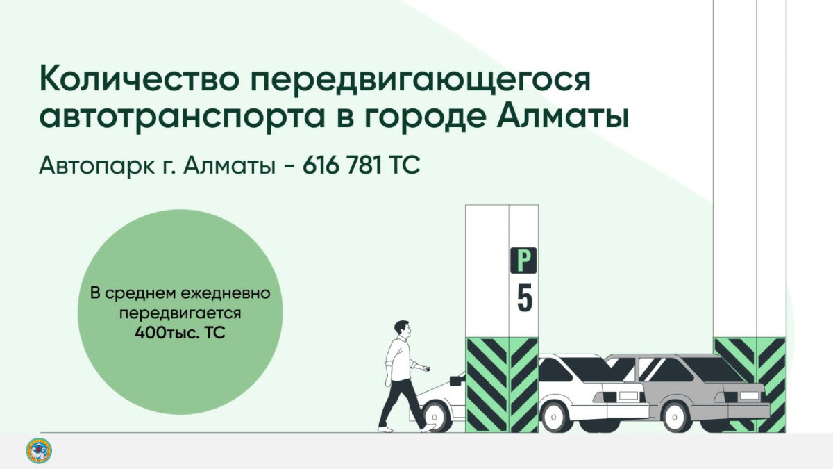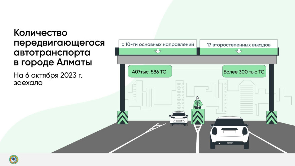 Помимо входящего транспортного потока в самом Алматы зарегистрировано около 617 тысяч автомобилей. Более 400 тысяч машин регулярно передвигаются по городу вместе с теми, кто приезжает из области, то есть суммарно более одного миллиона 100 тысяч транспортных средств. Иными словами, ситуация на дорогах такая, как если бы за руль сел каждый второй житель города.