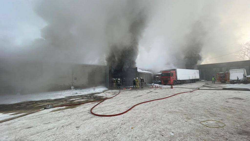 "Силы и средства ДЧС  работают  по повышенному рангу. Происходит горение складского помещения, на месте развернута работа штаба, создано два участка тушения пожара, введены стволы на тушение и защиту соседних складов", — сообщили в ДЧС.