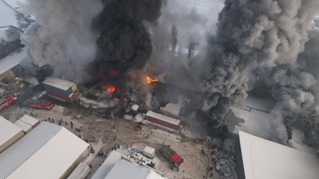 Огнеборцы Алматы тушат пожар повышенного ранга опасности. Горит склад не далеко от барахолки. Видео с места пожара появились в социальных сетях,  передаёт BaigeNews.kz.