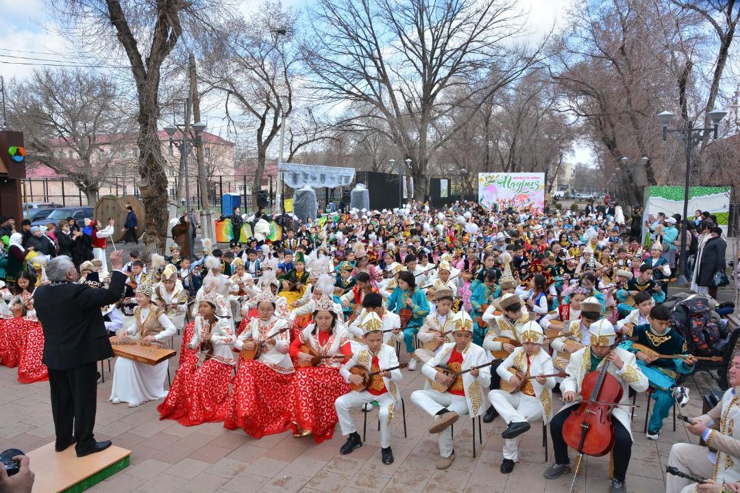 Звуки домбры одновременно зазвучали на праздничной площадке в исполнении 600 учеников школ, гимназий, домов творчества, 70 педагогов и 20 родителей. Руководил оркестром дирижёр, заслуженный деятель искусств Казахстана, профессор Үкібай Дүйсен. Музыканты исполнили кюи Курманғазы "Балбырауын", "Адай", "Сарыарка".