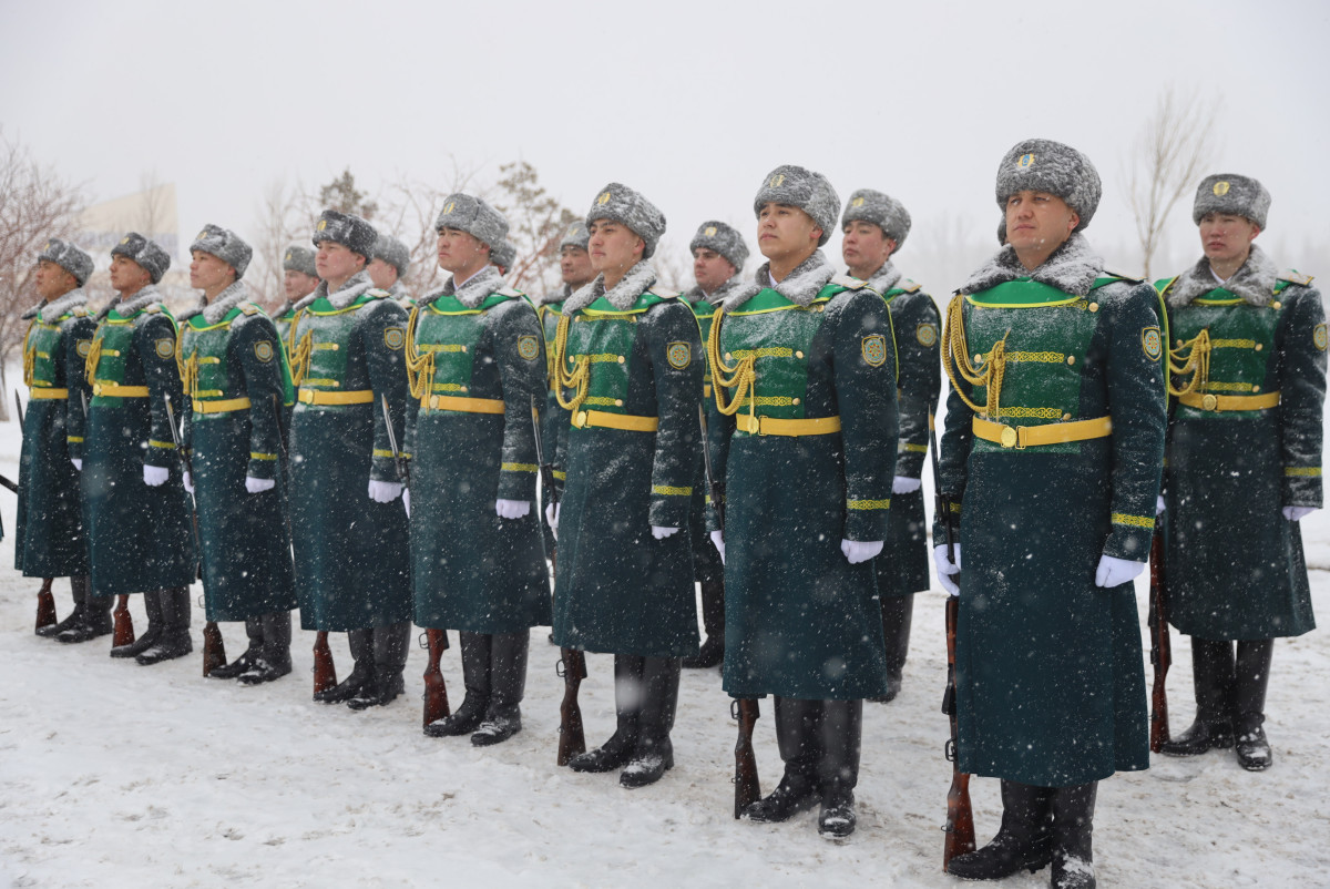 В рамках мероприятия состоялась церемония возложения цветов к памятнику 17 казахстанским воинам, погибшим при выполнении боевых задач на таджикско-афганской границе. Участники почтили память павших минутой молчания.