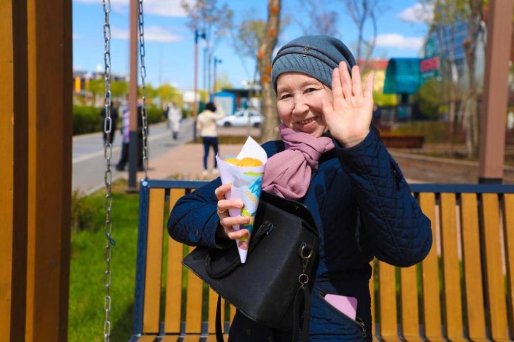 "Поздравляю казахстанцев с этим праздником единства и согласия. Сегодня мы намерены призвать наш народ к единству и укрепить чувство любви к Родине, вручая наше национальное блюдо ― бауырсаки", ― сказал волонтер.