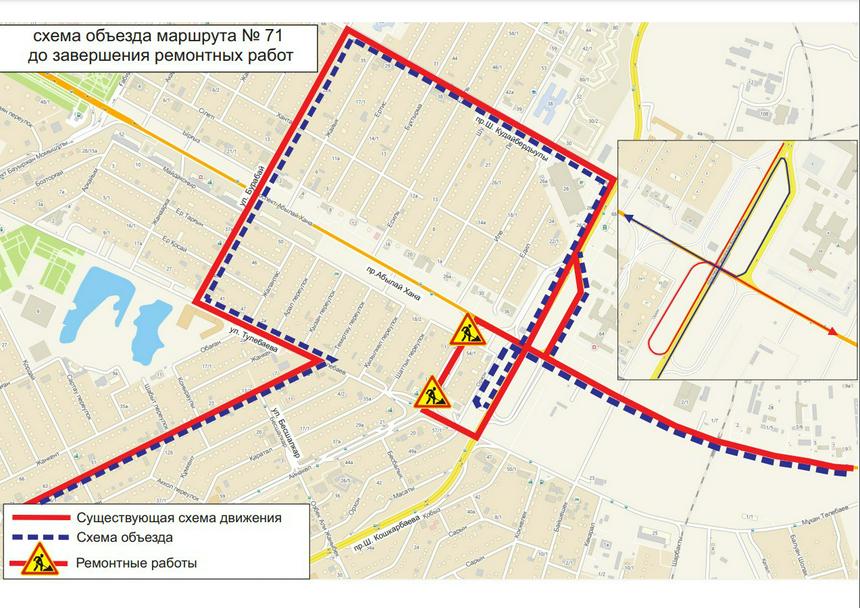 "До завершения ремонтных работ, временно изменены схемы движения маршрутов №№ 9, 11, 28, 29, 29А, 48, 71", — говорится в сообщении компании.