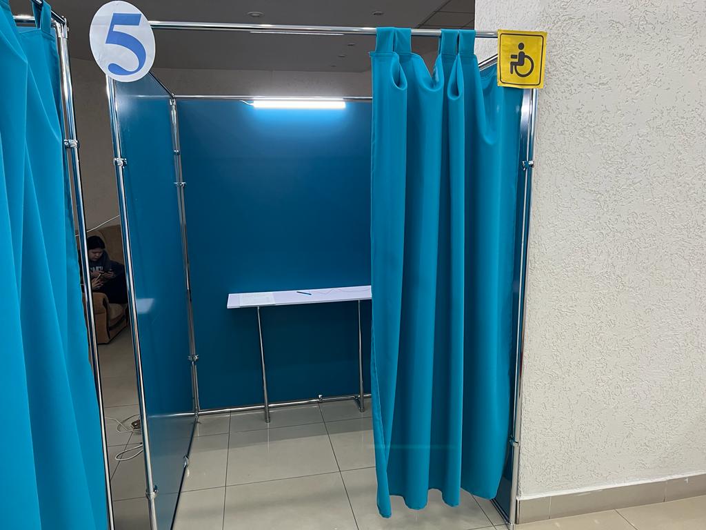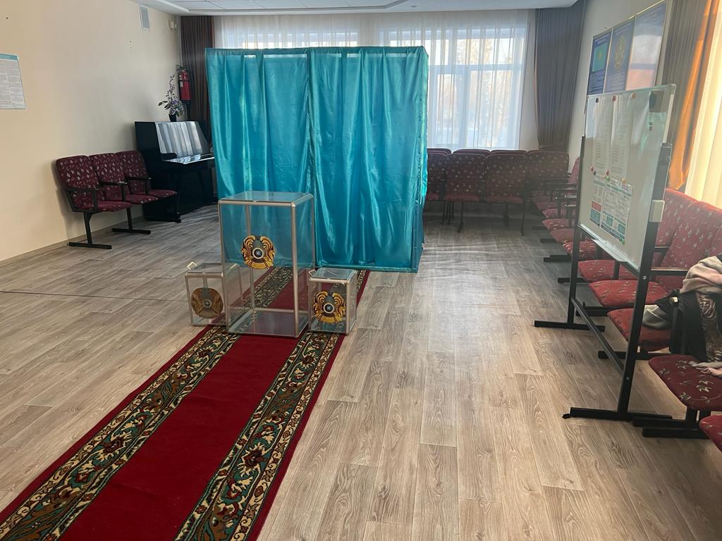 Мукажанов сообщил, что участок полностью снабжён всеми необходимыми для выборного процесса атрибутами – стационарными и переносными урнами, стендами, где избиратели могут ознакомиться с правилами поведения на участке, ответственности за нарушение избирательного процесса.