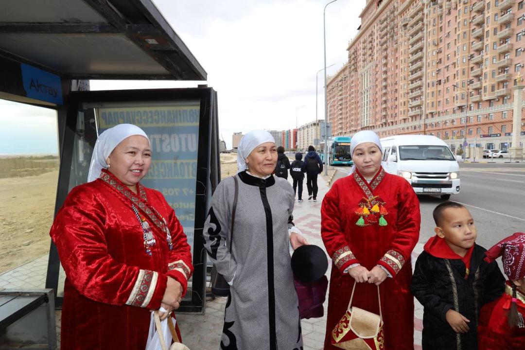 Мероприятие стартовало в особом формате. Девушки и матери в национальных головных уборах, украшенных перьями филина, и традиционных казахских платьях, ездили в общественном транспорте и дарили пассажирам прекрасное настроение, исполняя народные песни.