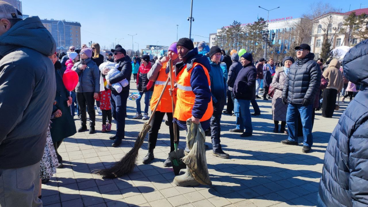 Молодые люди на ходулях, венчающих процессию, притягивали внимание тысяч гостей, которые с 9 утра начали собираться в центре города. Караван закончил своё шествие под благословение Кадыр-ата, главного героя Наурыза. Он пожелал, чтобы главный весенний праздник и весь предстоящий год прошли для семейчан и всей страны удачно.