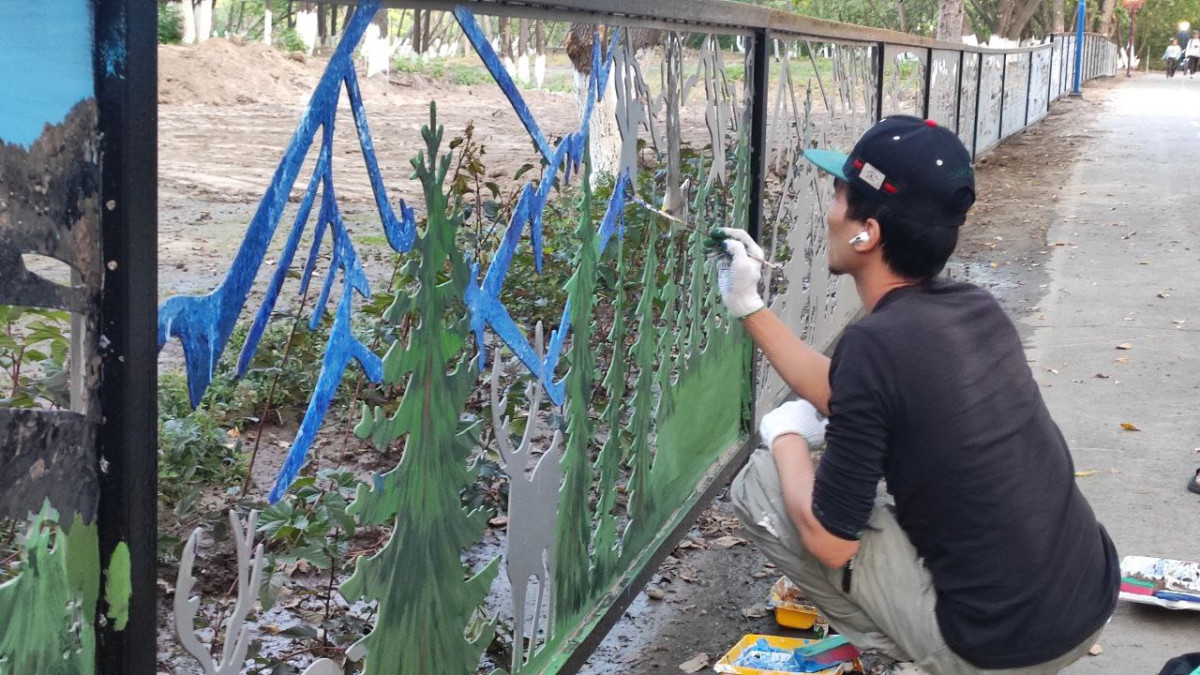 Вдоль тропы здоровья появились новые спортивные площадки с инвентарём уровня любителей и профессионалов. Под деревьями установили лавочки, рядом – разноцветные фонари с мягким светом. Забор при входе в аллею в анималистичном стиле отсылает воображение прохожих в Биологический центр, рядом с которым разместилась конечная остановка детской железной дороги.