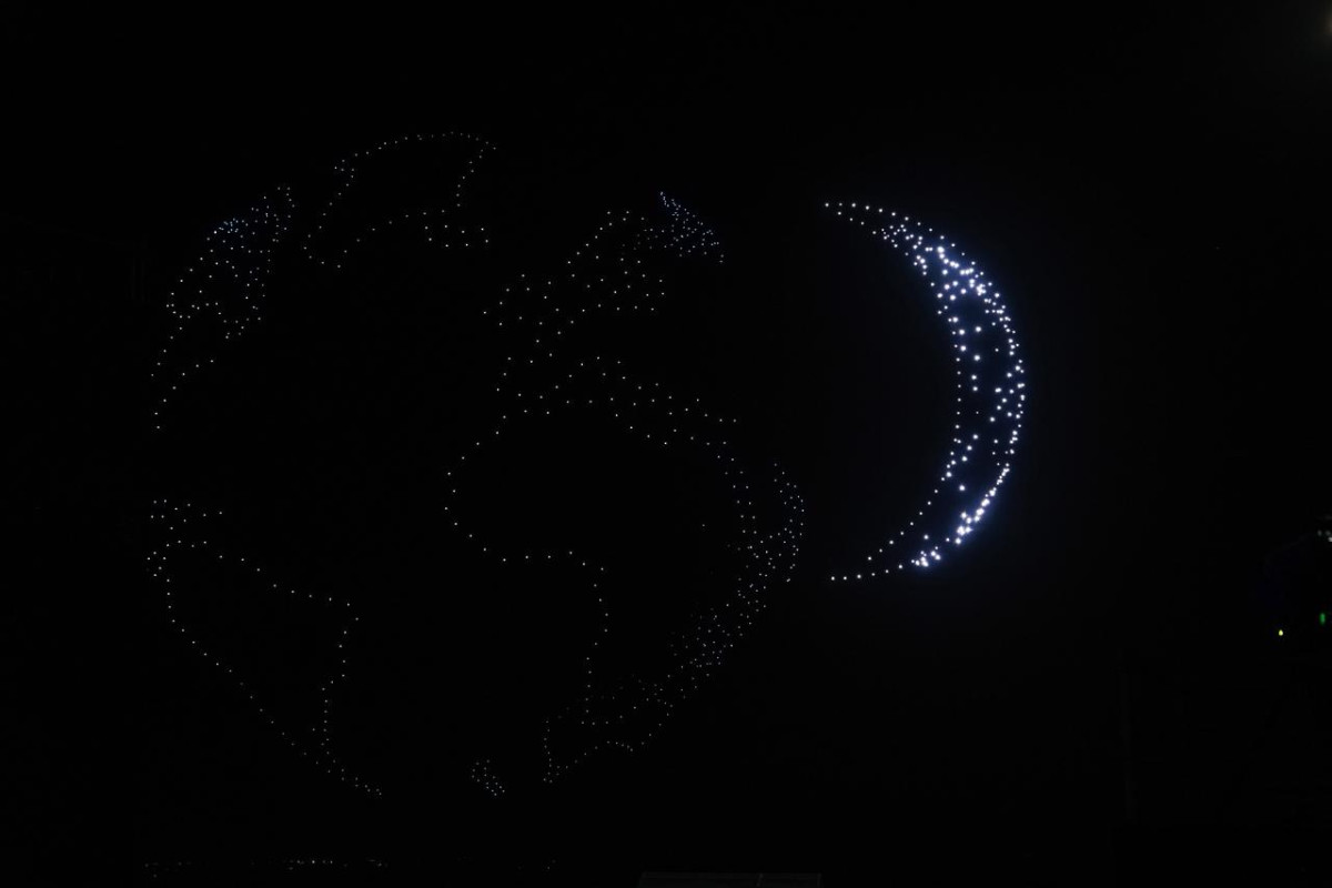 Программу продолжило дрон-шоу, в котором 2 000 синхронизированных дронов создали световые фигуры в небе над Эр-Риядом.