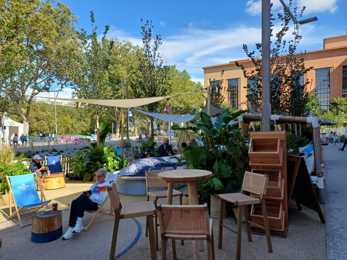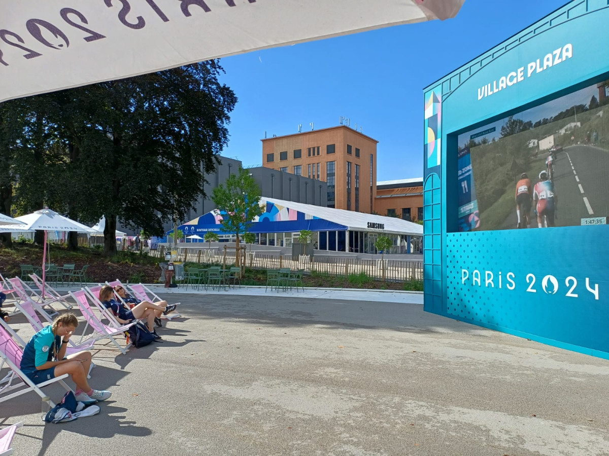 Красивая набережная с видом на Сену, аккуратная "деревенская площадь" с экраном, на котором транслируются соревнования.