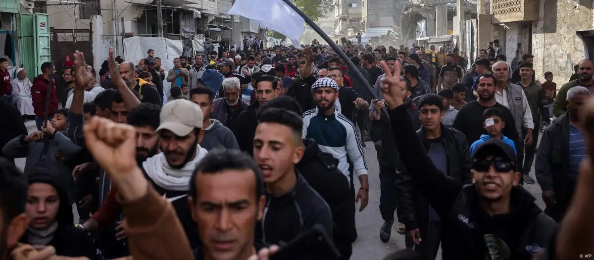На севере сектора Газа сотни палестинцев вышли на улицы с требованиями прекратить войну против Израиля и отстранить группировку ХАМАС от власти, пишет dw.com.