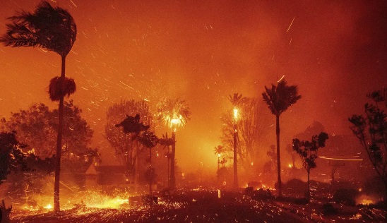 Три пожара, бушующие с 7 января в пригородах Лос-Анджелеса, опустошили площадь в 40 000 акров, что больше города Сан-Франциско. По информации Калифорнийского ведомства по защите лесов и предотвращению пожаров, пламя уничтожило более 12 000 строений, около 150 000 человек были вынуждены покинуть свои дома.