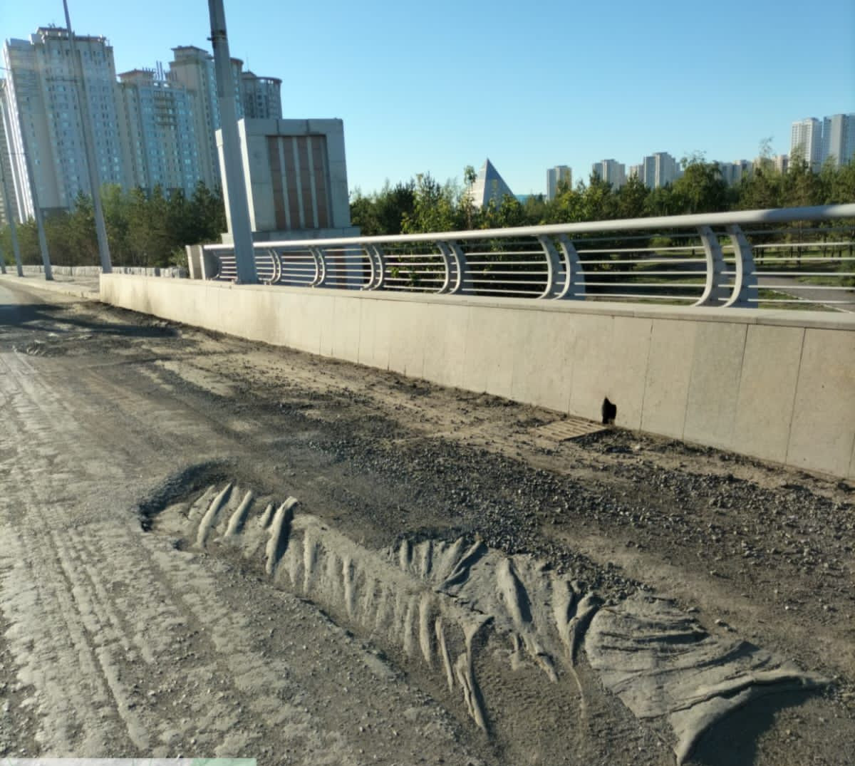 Ремонт автомобильного моста проводился более 12 лет назад, сообщили в акимате. Из-за большой проходимости за это время время на мосту образовались трещины, ямы и выбоины. Поэтому для обеспечения безопасности дорожного движения в августе начался средний ремонт автомобильного моста на участке от транспортной развязки на пересечении пр. Мәңгілік Ел - ул. Сарайшық до пр. Р.Қошқарбаева.