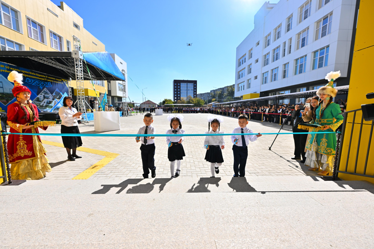 Новая школа была построена в микрорайоне "Заря" в рамках сотрудничества акимата области Абай и корпоративного фонда "KAZ-Minerals Demeu".