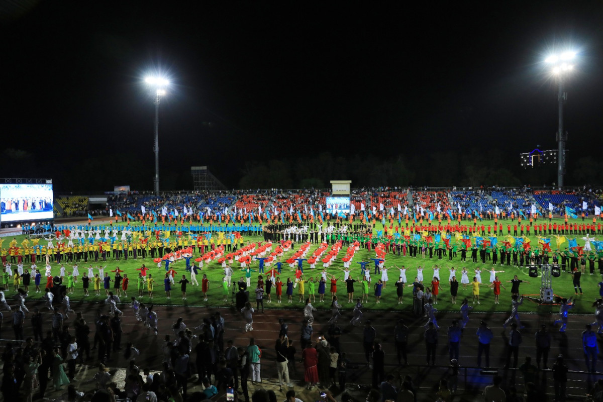 Аким области Нуржан Нуржигитов отметил, что для жамбылцев большая честь — проведение торжественной церемонии открытия Спартакиады в Таразе.