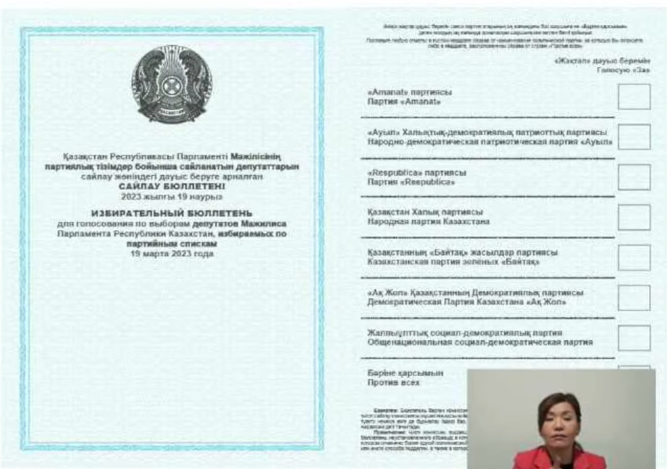 "Во-первых, мы работаем с урной - она остаётся в прежних размерах. Количество бюллетеней возрастает в разы. При этом мы поэксперементировали, посмотрели, что если мы с привычного А4 бюллетеня будем использовать А5 размер. Этот бюллетень вполне читаемый. Строчки для семи, например, если по партийным спискам, то семь строчек, это наименование политических партий на двух языках с окошком для проставления отметки и восьмая позиция - для голосования против всех. И примечания, где объясняется, как надо проставлять отметку. До 16 фамилий, если говорить об одномандатных округах, вполне умещаются, полноценно всё изображается и позволяет совершенно спокойно, без напряжения всё это прочитать. Для людей слабовидящих у нас специальные места оборудуются на участках. Это было до этого на всех выборах, и сейчас тоже. Если надо, и лупа, дополнительное освещение, шрифты брайля и так далее", - уточнил Нурлан Абдиров.