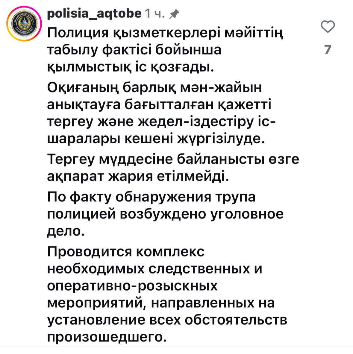 В сети распространяется информация о том, что в Актобе якобы обнаружены тела людей. Сообщения активно пересылаются в WhatsApp и публикуются в социальных сетях, передает BAQ.kz.