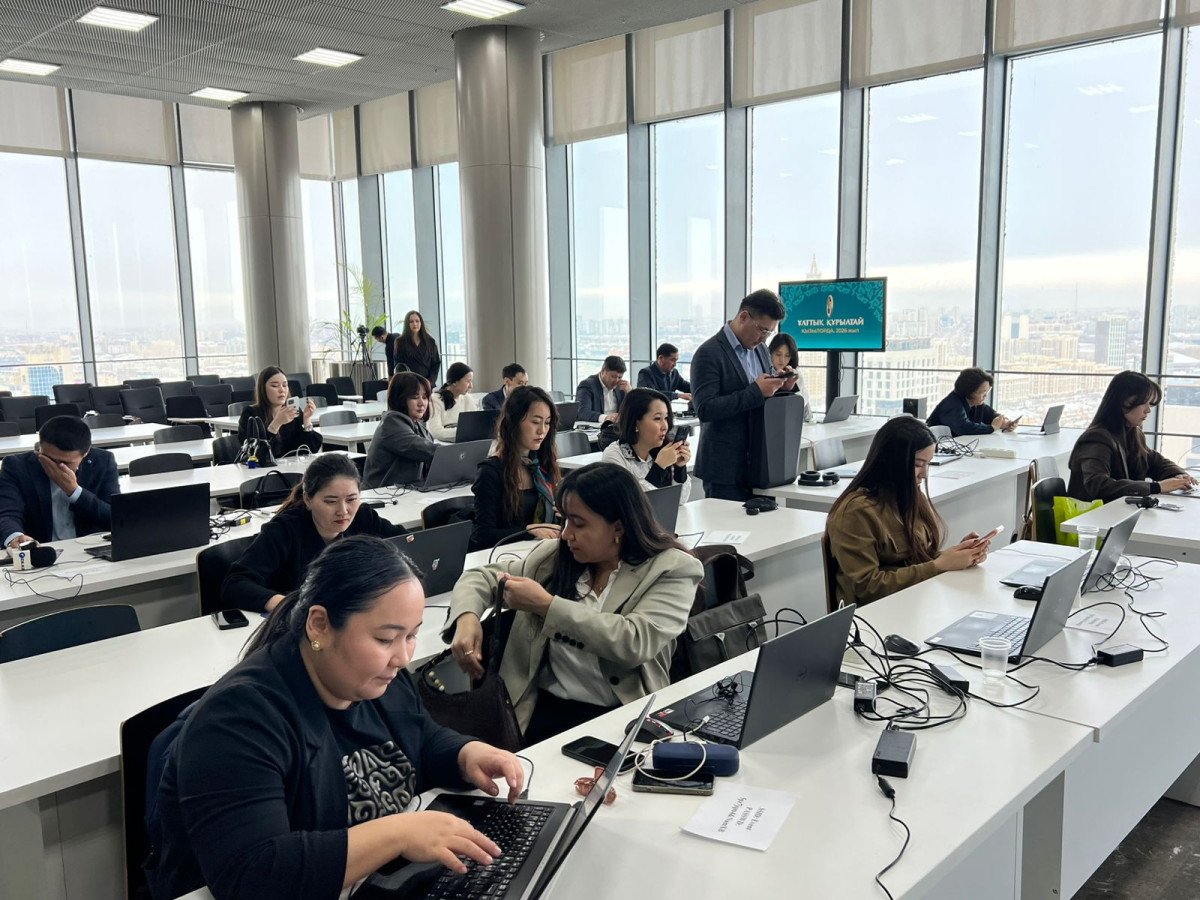09:51 - Журналисты находятся в ипровизированном пресс-центре в холле Казмедиа и ждут начала трансляции. В зале завершается техническая настройка оборудования для прямого эфира. Ожидается что эфир начнется в 11.00.