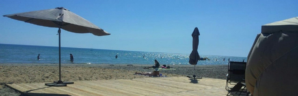 Пляж оборудован специальной деревянной площадкой, тентами, шезлонгами, зонтами, для маленьких детей предусмотрены надувные бассейны. На территории пляжа открыта раздевалка с поручнями, к морю проложена специальная дорожка, по которой можно проехать на инвалидной коляске.