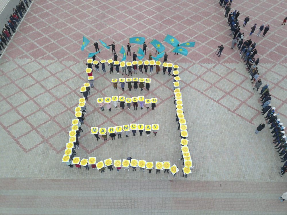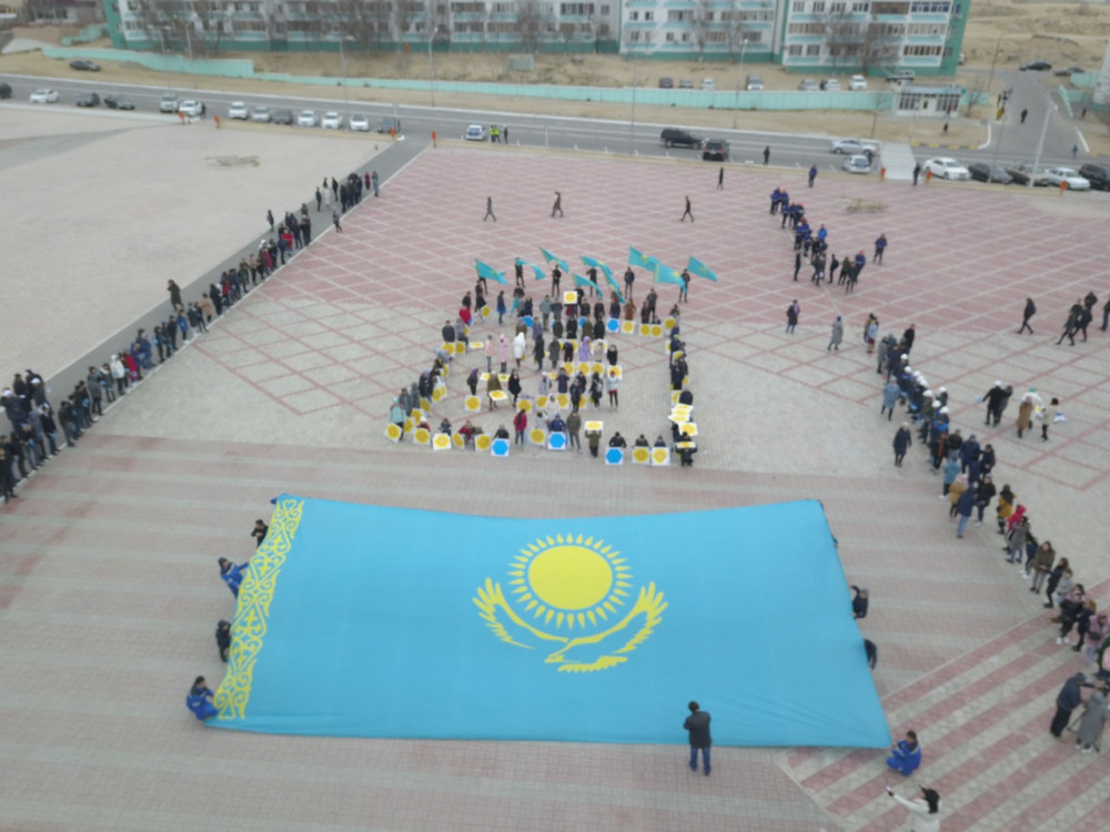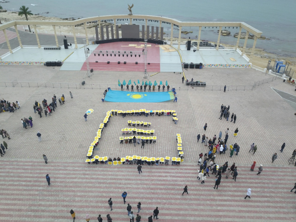 В рамках мероприятия молодёжь выложила буквами слова: "Елбасы", "Мангыстау", "Казахстан". Затем подняли в небо флаги Казахстана. В заключении мероприятия несколько десятков человек пронесли по набережной Актау флаг страны площадью 40 квадратных метров.