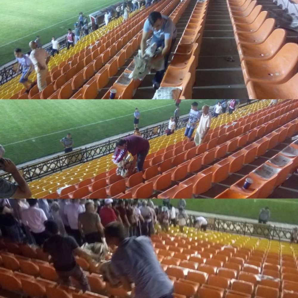"Многие болельщики поддержали акцию "Наш дом Кобыланды" и убирали мусор после матча за собой и за другими болельщиками", - написано в подписи к фото.