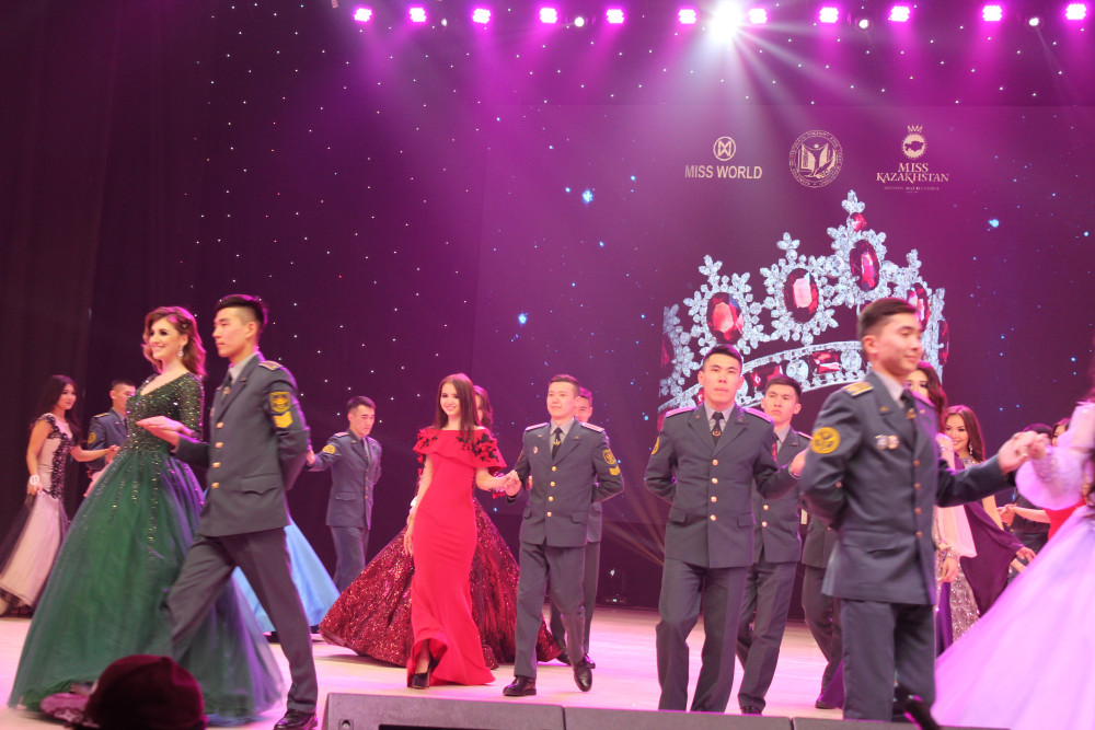 Последний тур вызвал наибольшее восхищение публики. Девушки в красивых вечерних нарядах выходили под руку с курсантами ВИСВО (военный институт сил воздушной обороны имени Талгата Бегельдинова).