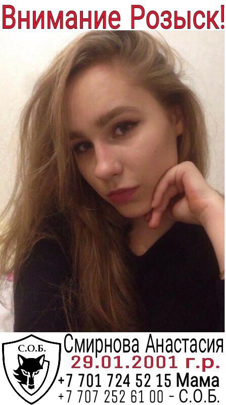 Если кто-то обладает какой-либо информацией, родственники просят обратиться по следующим номерам: +7 701 724 52 15 Смирнова Екатерина (мама); +7 771 748 13 49 - Елизавета (сестра); +7 707 252 61 00 - инициативная группа поиска Совета общественной безопасности.