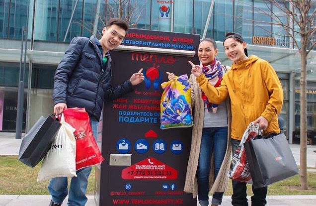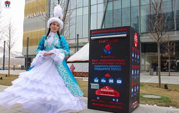 Подобные пункты приема вещей установлены около крупных ТЦ мегаполиса: «Esentai Square», «Dostyk Plaza», «Mega Alma-Ata», а также у клиники «OnClinic» и ресторана «Pita Green».