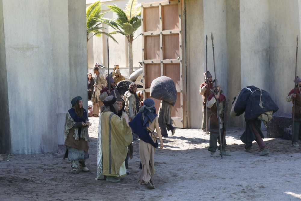 Съёмки последних сцен проходят в декорациях "Вавилон". Они переносят нас в 539 год до нашей эры. Снимается одна из заключительных сцен - приезд мужа и сына царицы Томирис к Киру.